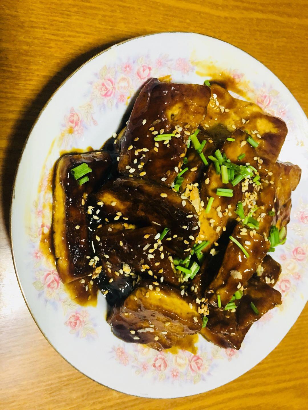 豆腐煎过后配上糖醋很入味,好吃😋