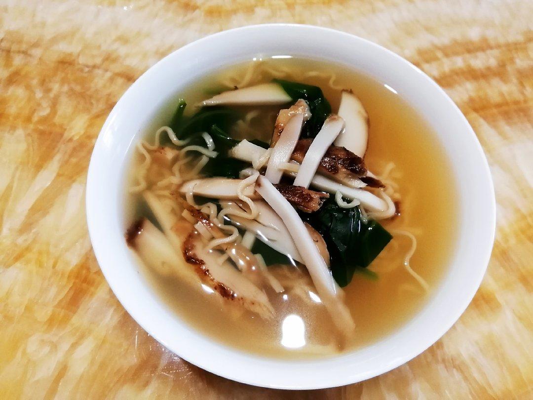农历生日,食一日素,新鲜从花园里剪来的木耳菜和松茸搭配煮一碗素面