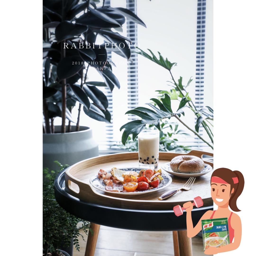 茕兔西顾Rabbit 做过 家乐×下厨房 | 控碳刷脂,7天搭配不单一! 不想摆拍的早晨,有发发草草昨天又盒马了番茄土豆,那么依旧烤一烤,煎一个培根和鸡蛋,热一个摩卡巧克力贝果,煮了一杯奶茶~赏花赏太阳◝😎◟ #早餐•2018年8月15日##🐰兔几炸厨房🐰##冲吧!面包君~# 2018-08-15