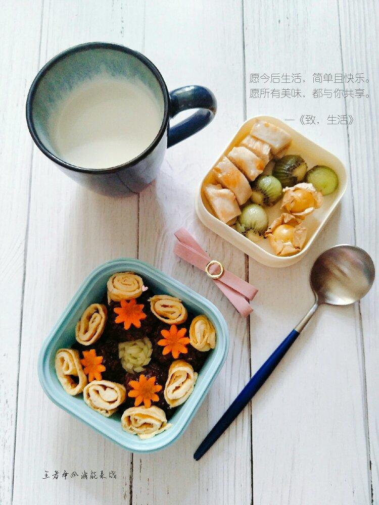 童年-时光 做过 尚膳宝 | 晒出你的减脂便当,赢网红款便当盒! #早餐•2018年8月16日##太阳谷##有心更有爱花样早餐#早安周四,早餐,紫糯米鸡肉饭团,鸡蛋卷,猕猴桃,黄瓜,胡萝卜,牛奶,今天试吃太阳谷新品藤椒鸡胸,味道也不错,香嫩可口,健康营养美味。 2018-08-16