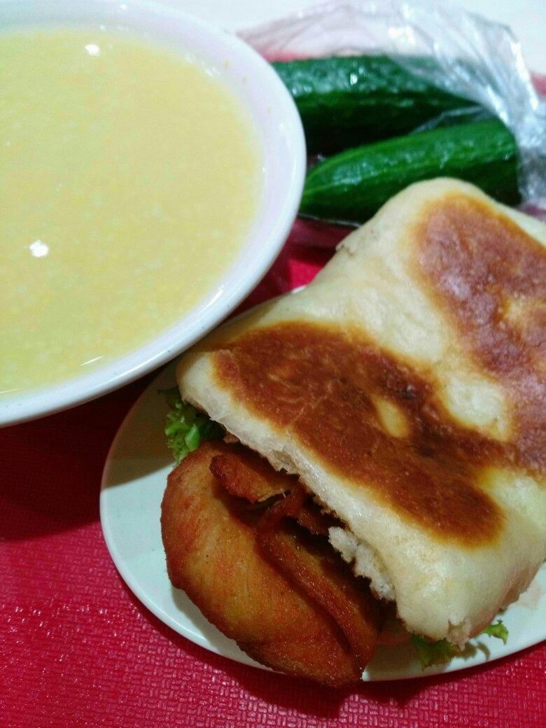 里脊肉饼+小米粥+青瓜