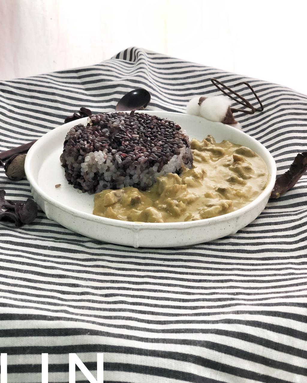 紫米魔芋饭,咖喱牛肉,太好吃,很下饭