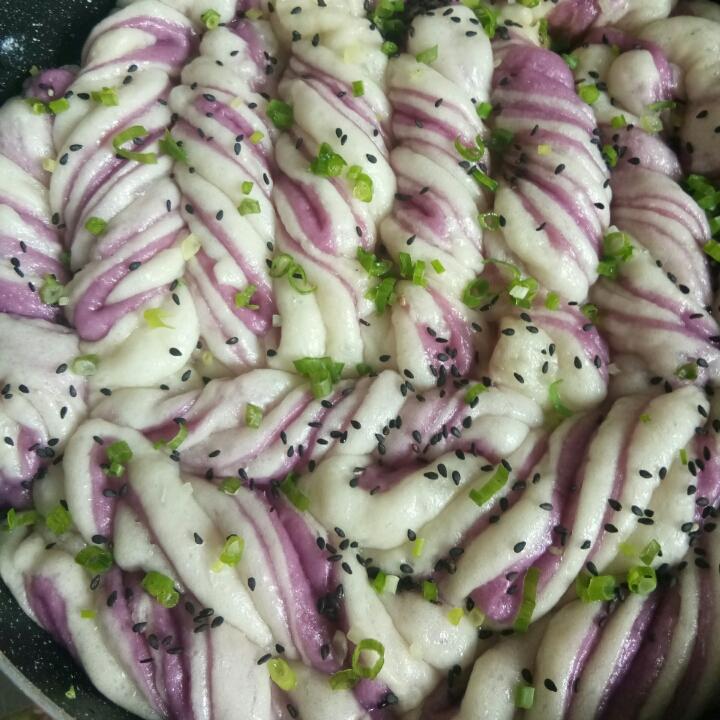 加了紫薯,做成双色花卷。
