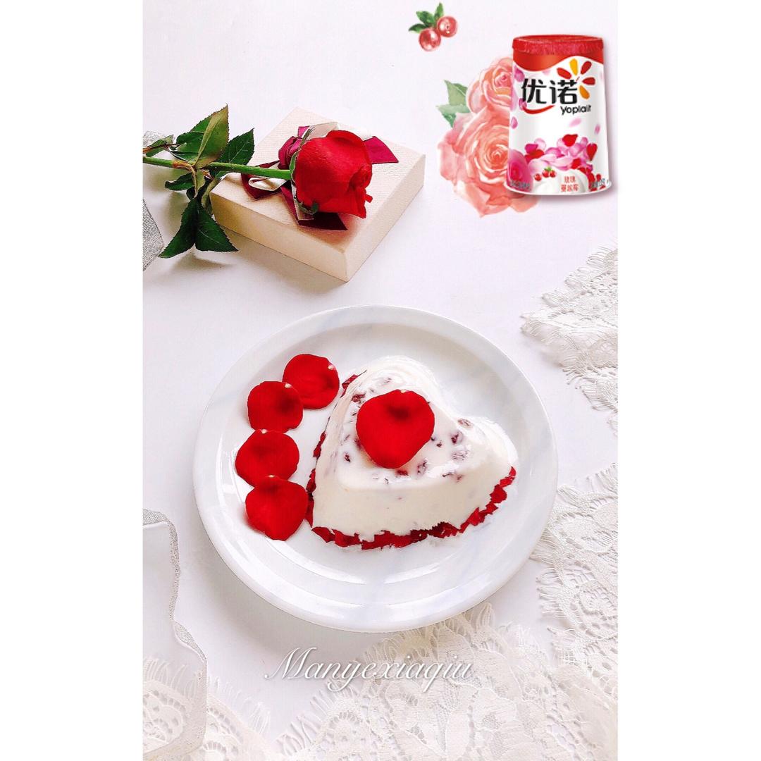 浪漫甜蜜的优诺蔓越莓酸奶制成心形奶冻,和迷人的红玫瑰好配哦🌹💕
