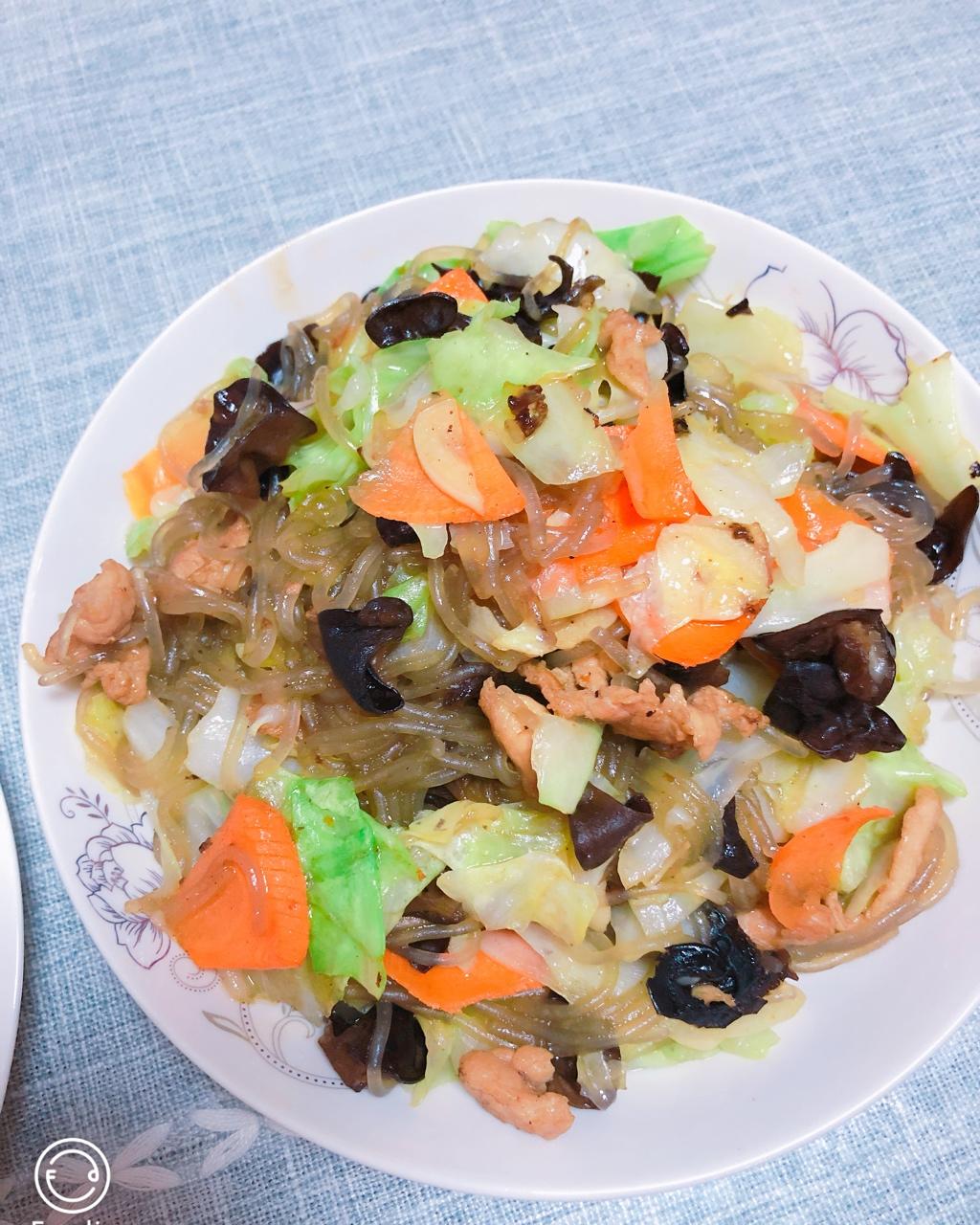 宽心菜➕木耳➕肉➕胡萝卜🥕➕粉丝,色香味俱全😘