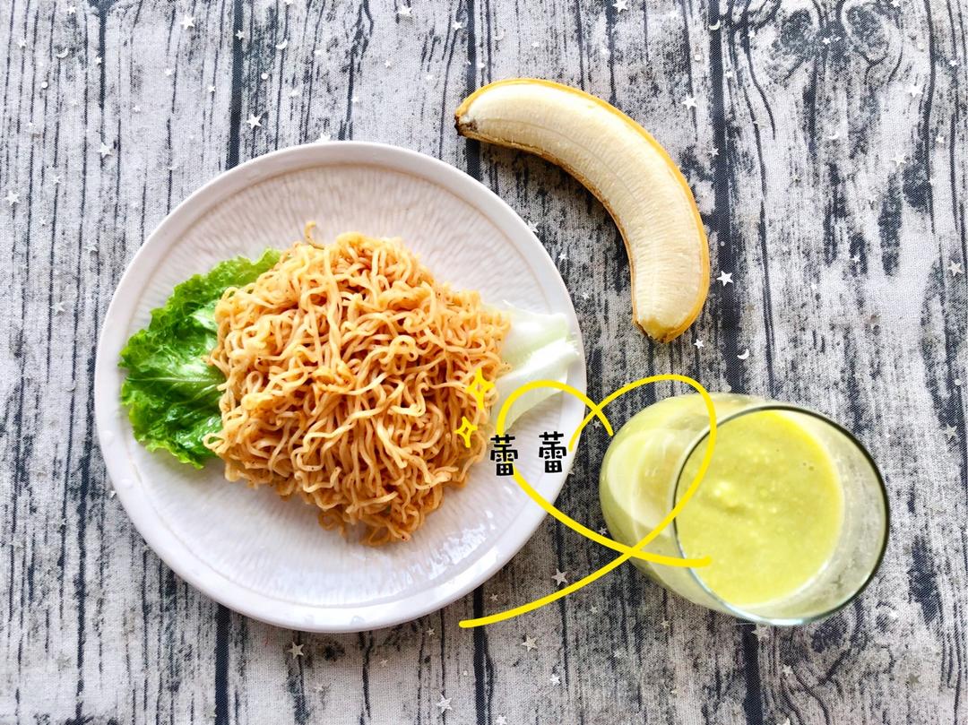 今日早餐:牛油果橙汁➕香蕉➕拌面