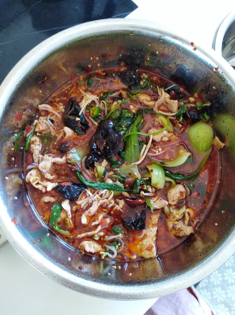 水煮肉片(搅拌了一下,所以盆里周围都是油)