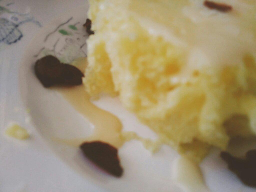 火山夭夭 做过 早餐•2018年8月22日 #早餐•2018年8月22日#/奶香微波蛋糕/微波蛋糕粉真是个好东西,香香软软的。(摆盘丑拒。其实一开始我用炼奶挤了个心形,但是拿着盘子走到客厅的时候没注意,把爱心晃没了゜´□`。)放了一点蔓越莓,里面和外面都有(我承认我是蔓越莓多了没地儿使233) 。被蛋糕包裹的蔓越莓真的是太好吃了。 2018-08-22