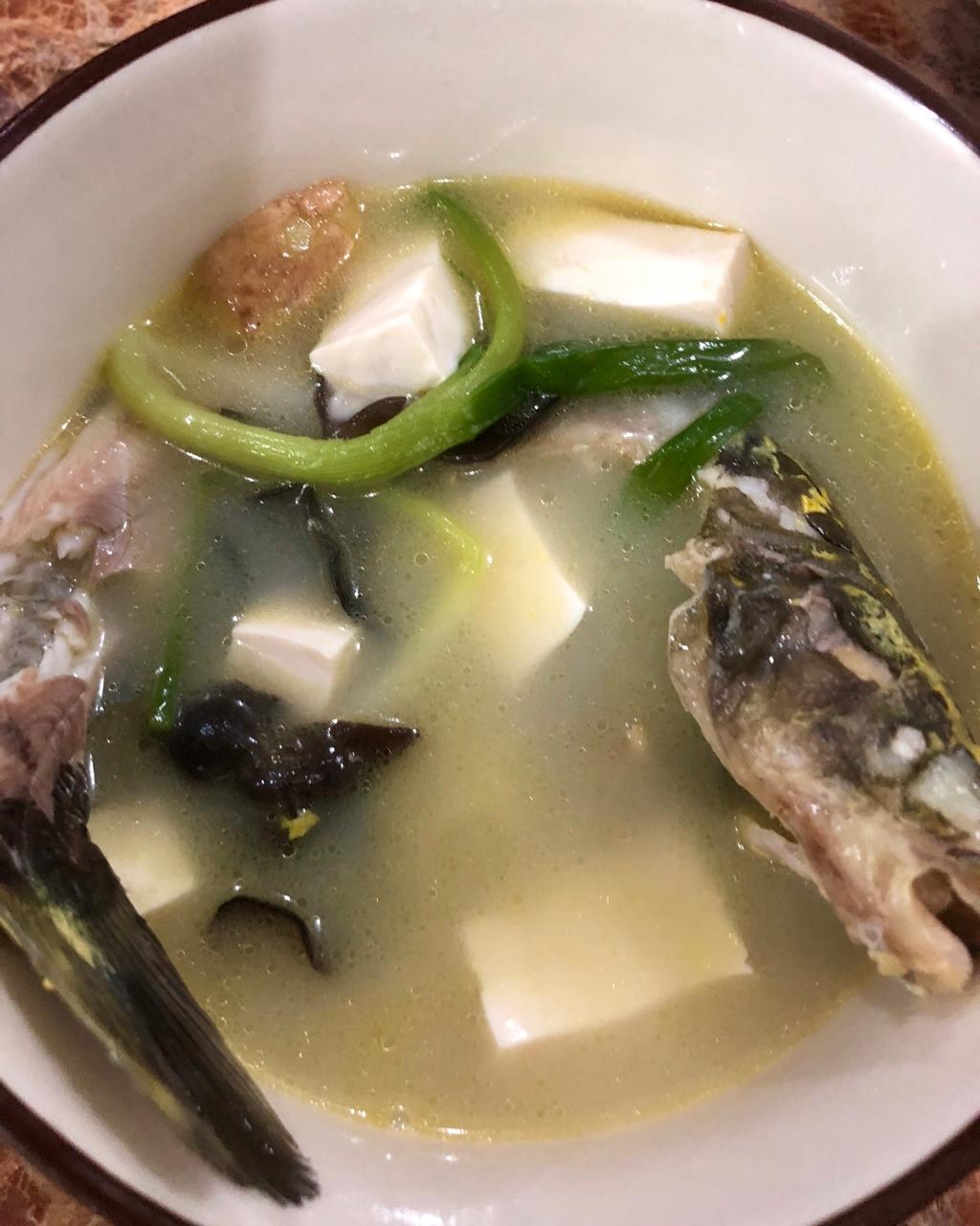 昂刺鱼豆腐汤,红烧排骨,炒莴笋叶~