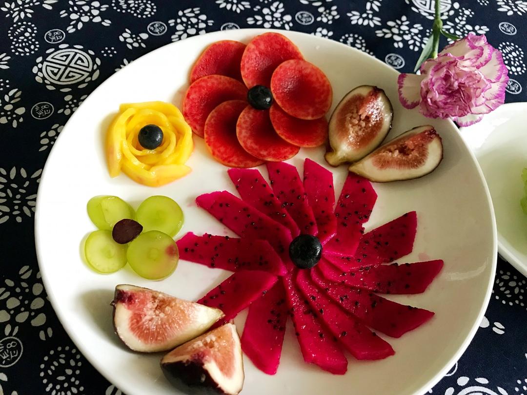 中式汉堡与花盘水果