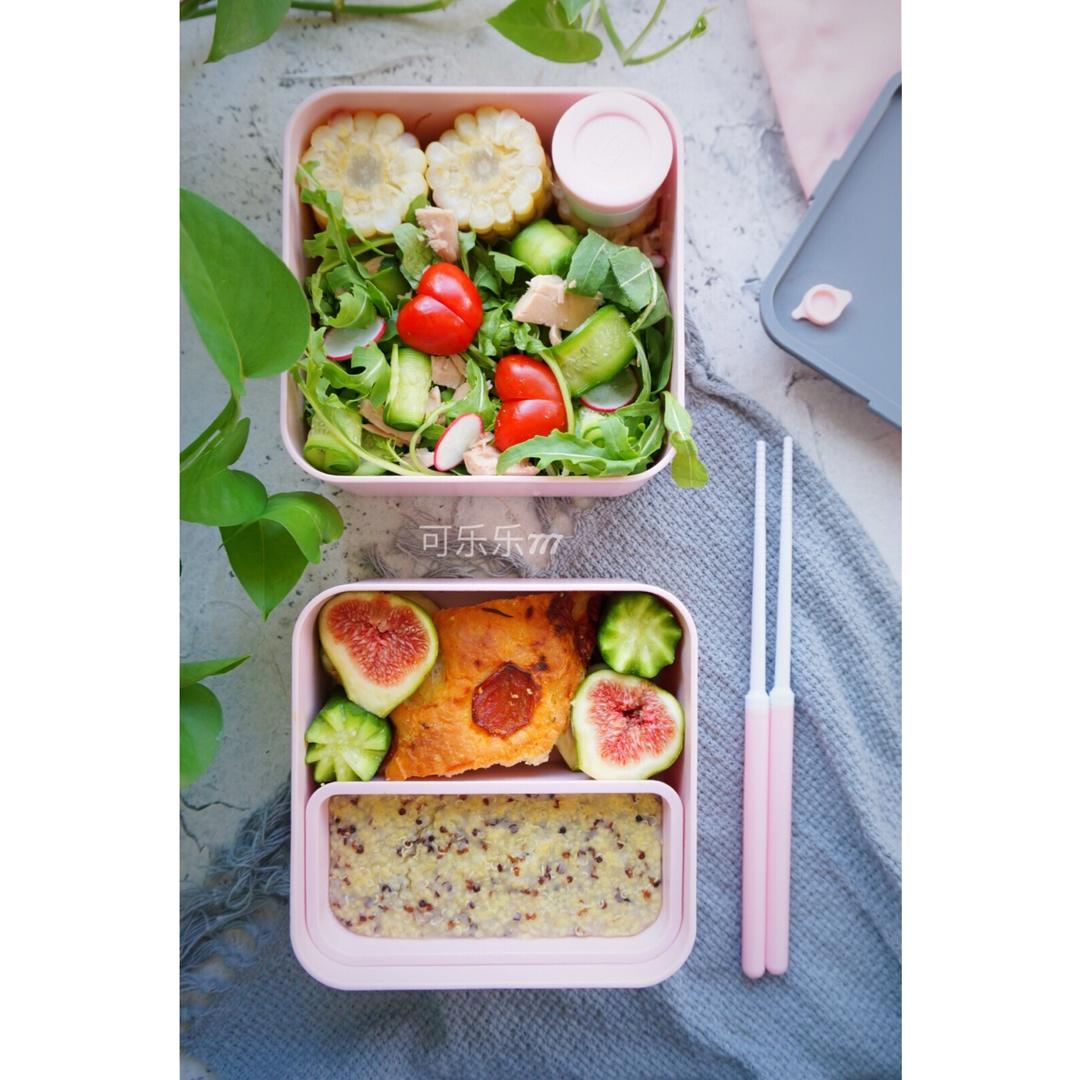 可乐乐777 做过 宫主便当 | 减脂D180 柠檬蛋烤鸡腿 夏日减脂便当:藜麦小米粥、全麦佛卡夏面包、蔬果沙拉、玉米、无花果、黄瓜😋😋😋 #午餐•2018年8月28日##生活需要美食和远方##减脂增肌瘦身餐# 2018-08-28