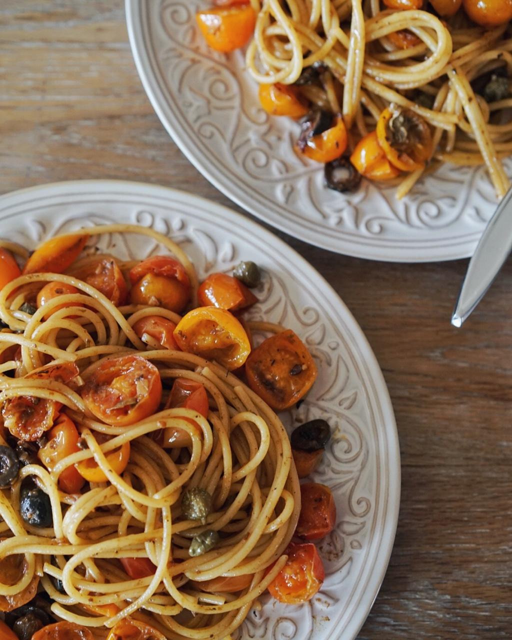 ChloMato 做过 烟花女意面Pasta alla puttanesca 滋味要怎么描述呢,酸溜溜、火辣辣、甜丝丝、这一盘里有南欧的骄阳、红色的裙摆、蔚蓝的海浪、热情似火、唇齿留香。 #午餐•2018年8月29日##意面# 2018-08-29