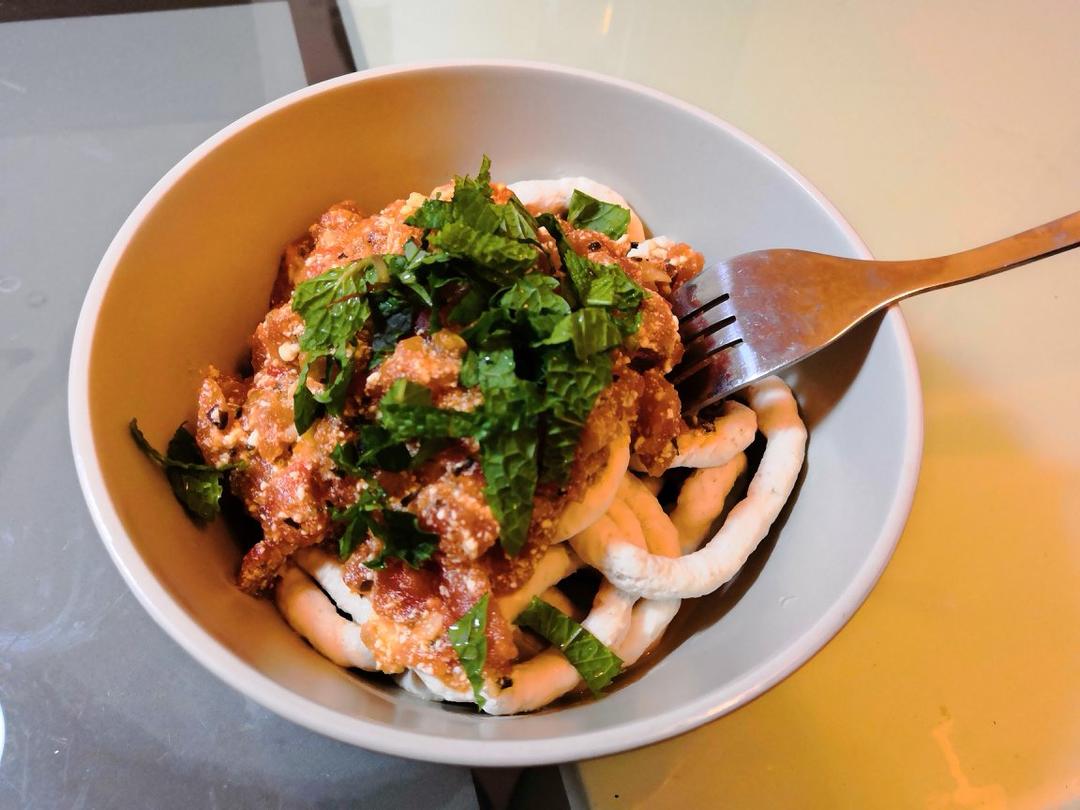 鸡胸肉做的粗面,鸡胸肉做的寿司,无油无碳水的鸡米花。其实……只有粗面是自己吃的。