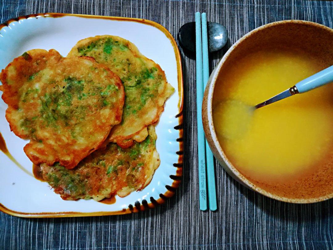 家有青春期男生 做过 早餐•2018年8月30日 #早餐•2018年8月30日#赵小胤高中党早餐第336单:小白菜玉米饼🍘 ,搭配玉米粥。前几天做了排骨小白菜,剩下了几个漂亮的菜叶子,放在混合面里,加了黑胡椒,味道棒棒哒 2018-08-30