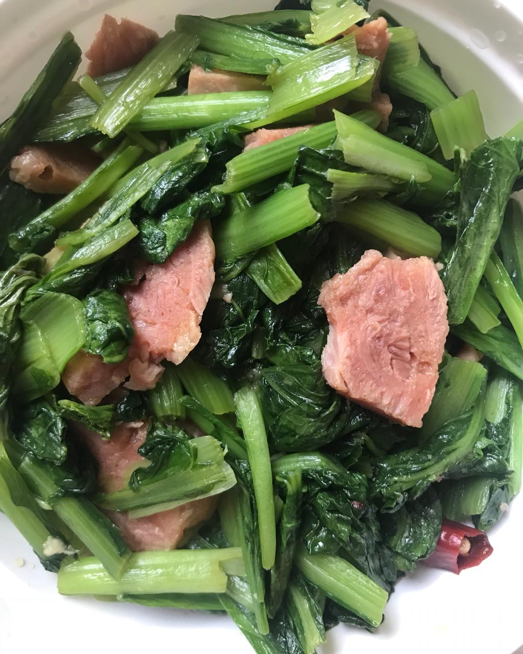 火腿炒小白菜,多吃蔬菜身体好