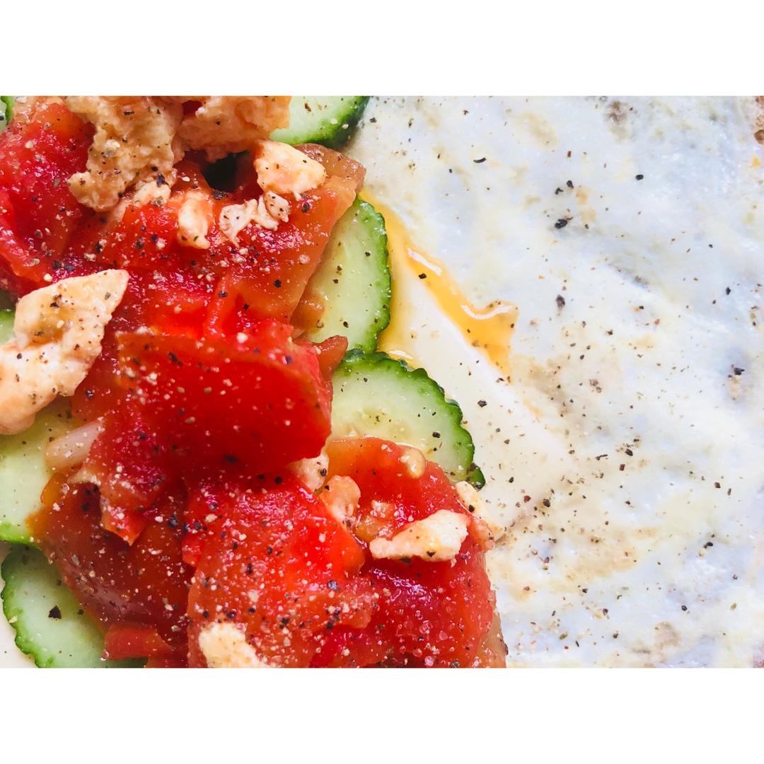 一颗蕃茄不爱蛋 做过 葱花手抓饼 一个月前买的葱油手抓饼放冷冻 加了芝士还有蛋 放上黄瓜片 还有一点昨天剩的番茄炒蛋 撒点黑胡椒海盐 非常满足了!😆有库存的感觉真好 🤭 #早餐•2018年9月1日##冰箱库存大作战##乱搭星人小日常# 2018-09-01