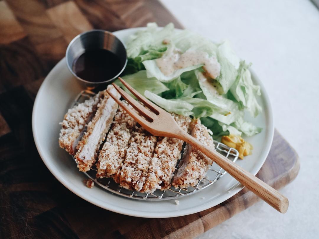 黄花 做过 日式炸猪排 第一块猪扒放进去的时候油温太低了整块炸出来油滋滋的后来温度上去之后就炸的很好了!!两个人吃了四块第二天爆痘也值得!!!#晚餐•2018年9月2日##想吃你就自己做啊# 2018-09-02