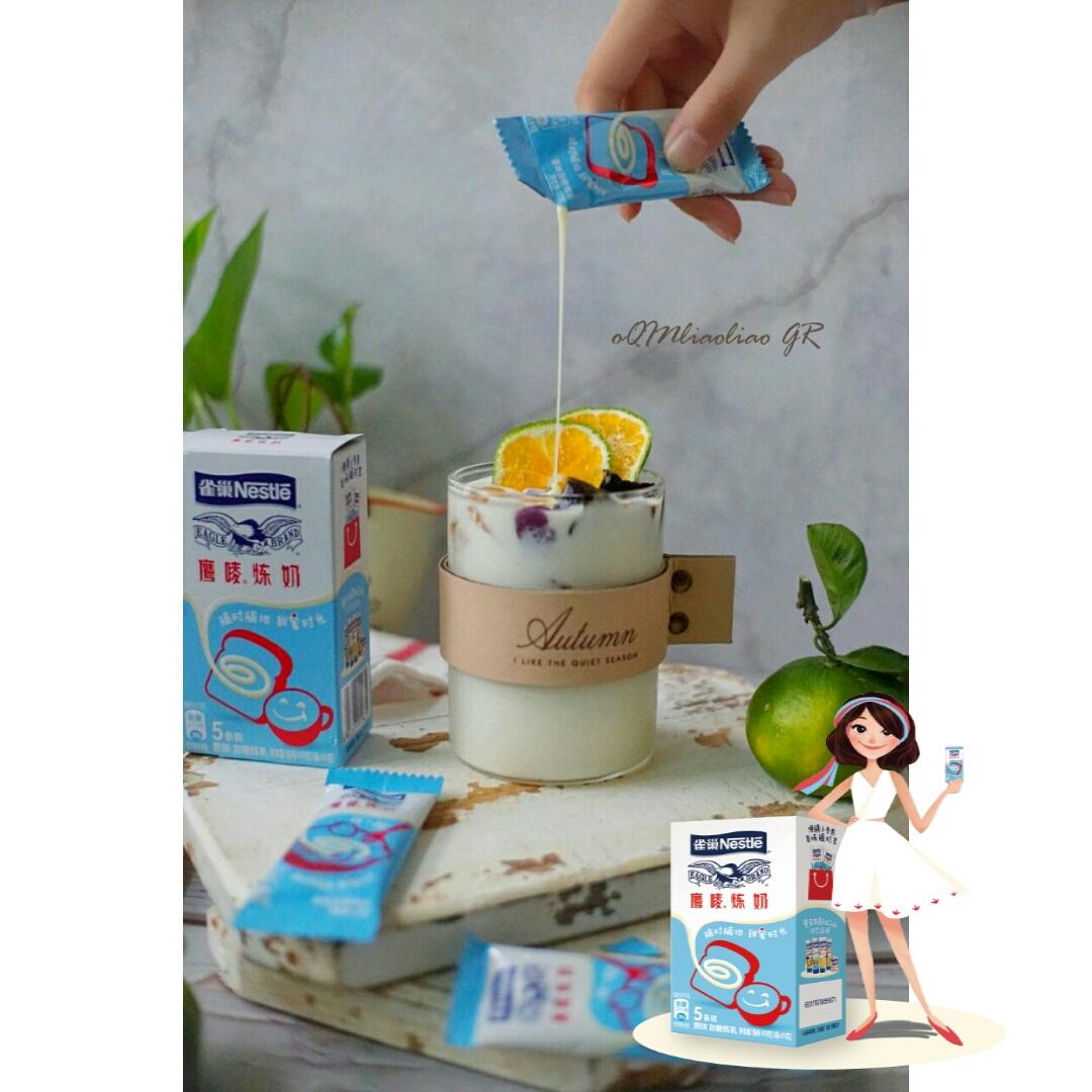 现在新出来的小条装,用起来特别方便,倒好酸奶,一杯正好挤一袋雀巢鹰唛炼奶,搅一搅享受甜蜜小食光吧!