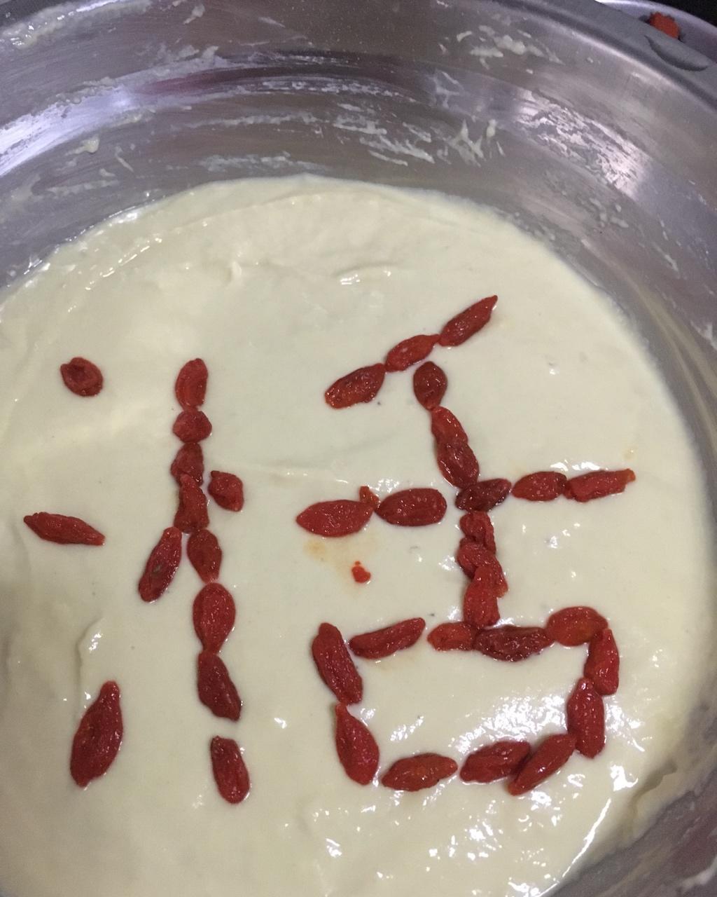 生日诞糕(白色:小米粉、低筋面粉、盐、枸杞、发酵粉;黑色:黑米燕麦黑豆黑芝麻粉、盐、安琪发酵粉)