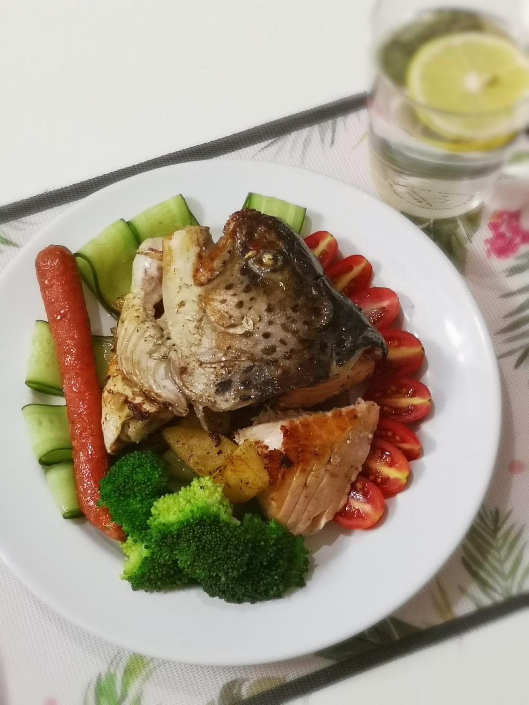 香煎三文鱼头+三文鱼肉