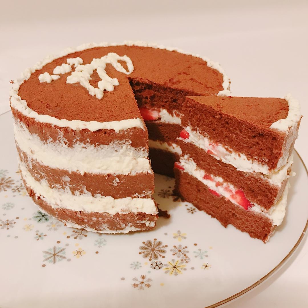 可可海绵蛋糕,夹了草莓夹心~