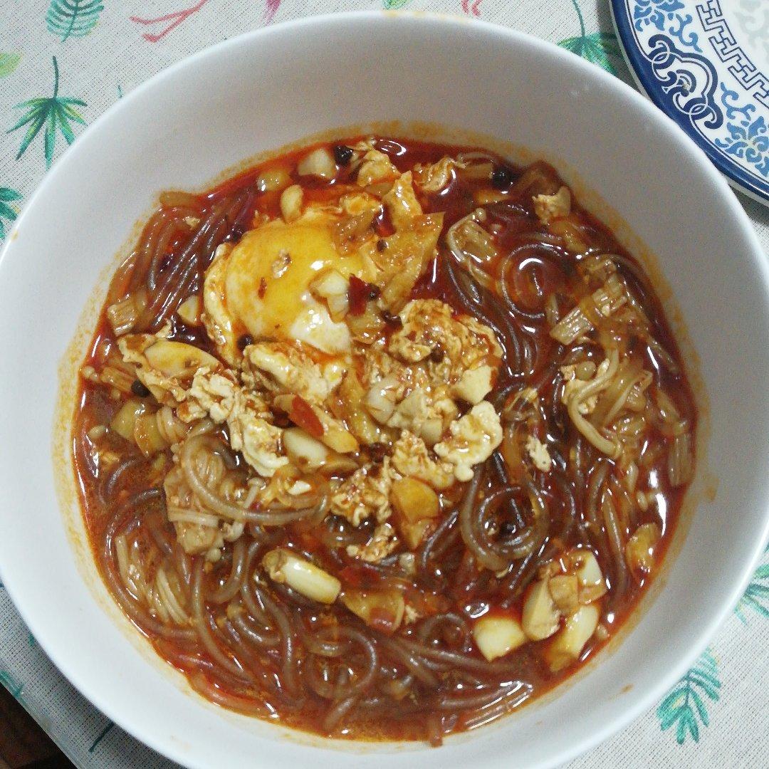 本来不打算吃晚饭的我~结果,没忍住,用重庆火锅底料自制了酸辣粉~~~