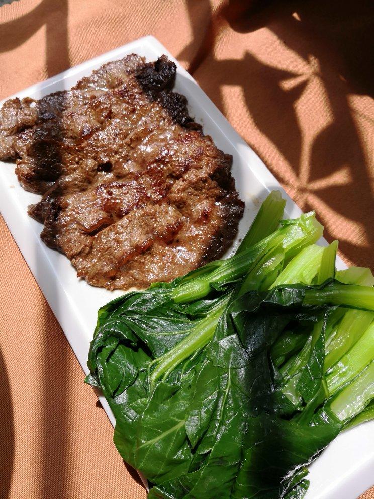 减脂打卡第五天:牛扒、菜心,加餐豆浆、柚子