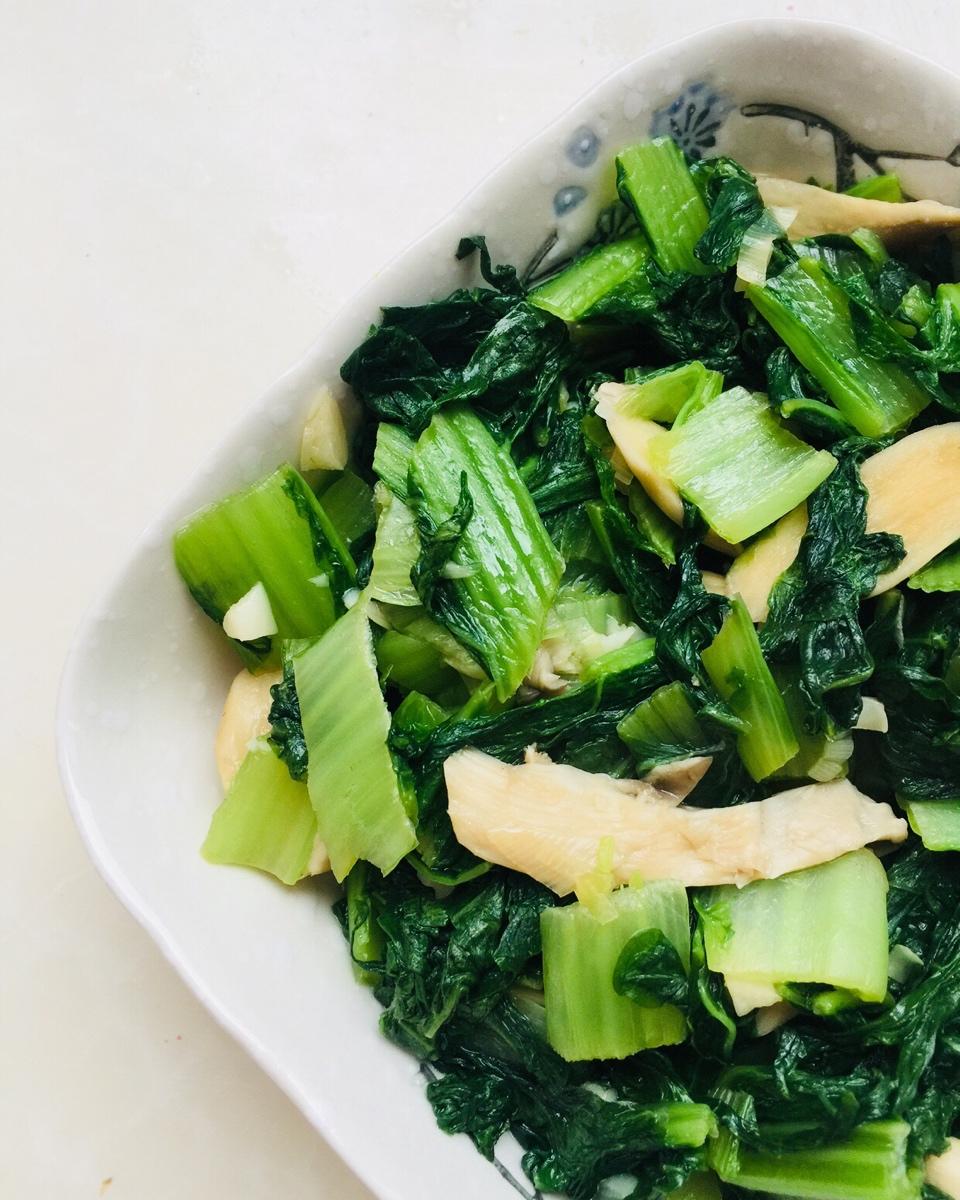 金秋时节里的一抹绿色——小白菜炒蘑菇