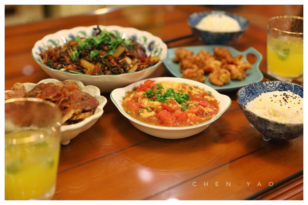 尧小妹 做过 晚餐•2018年9月19日 #晚餐•2018年9月19日#【生活记】晚餐 干锅兔+番茄🍅炒蛋+油炸虾🍤+麻辣香肠 今天在外办事居然跑了300多公里,我反正一直在车上睡觉,上车就来瞌睡,跑了一天都没有好好吃饭,晚上加餐补回来 饭后杨哥说为了我以后不那么娇气,加强锻炼,几哈瑜伽去,看样子好日子是要开始了 2018-09-19