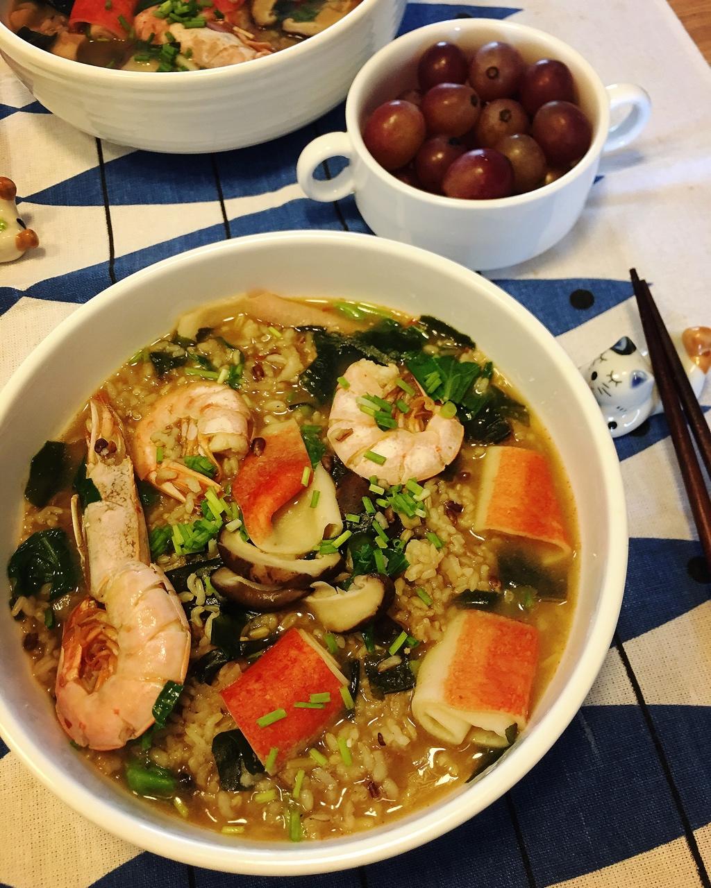 好好吃早餐-味噌汤海鲜泡糙米饭,红提~~❤~~