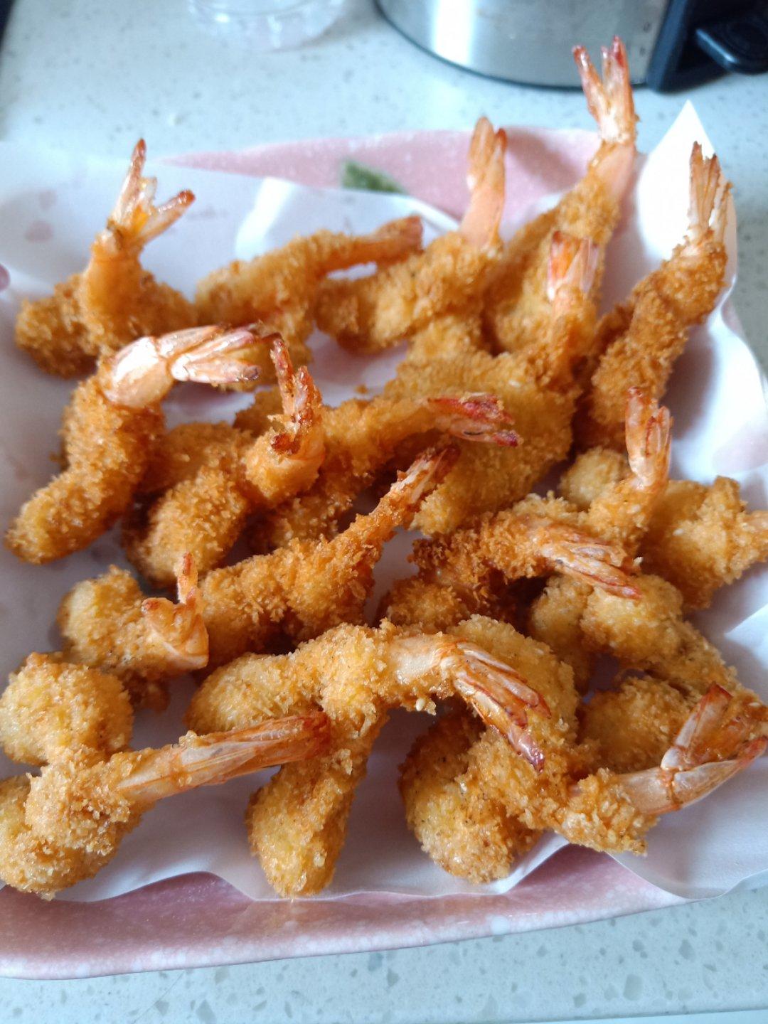 小吃拼盘里的炸大虾