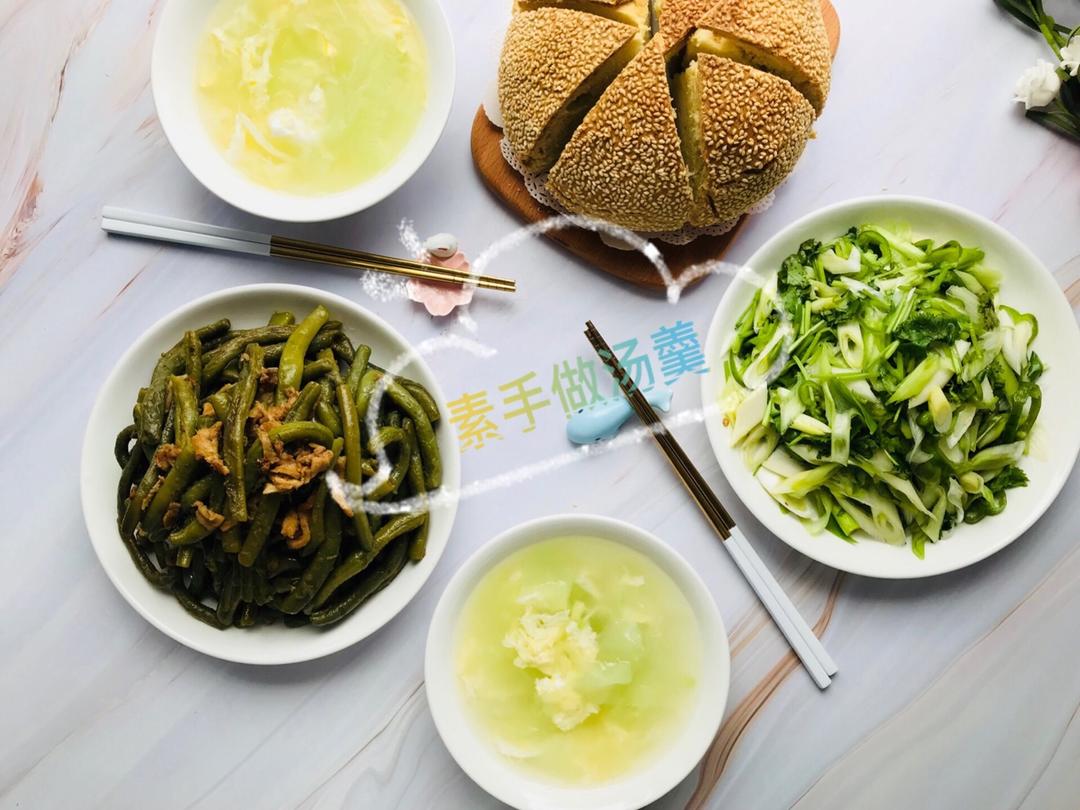 素手做汤羹1 做过 早餐•2018年9月22日 #早餐•2018年9月22日#早安,阳光!😄 今天付出一分的努力,可换取明天十分的安乐。人一生中最可怕的是无所事事,有事情做让自己忙起来,生活也会变得更充实。周末早午餐: 老虎菜 油脂豆角 麻包 黄瓜蛋汤 2018-09-22