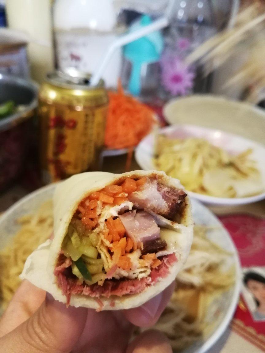薄饼机做的饼,卷上菜丝、酱肉、蛋条,一口下去超满足💯