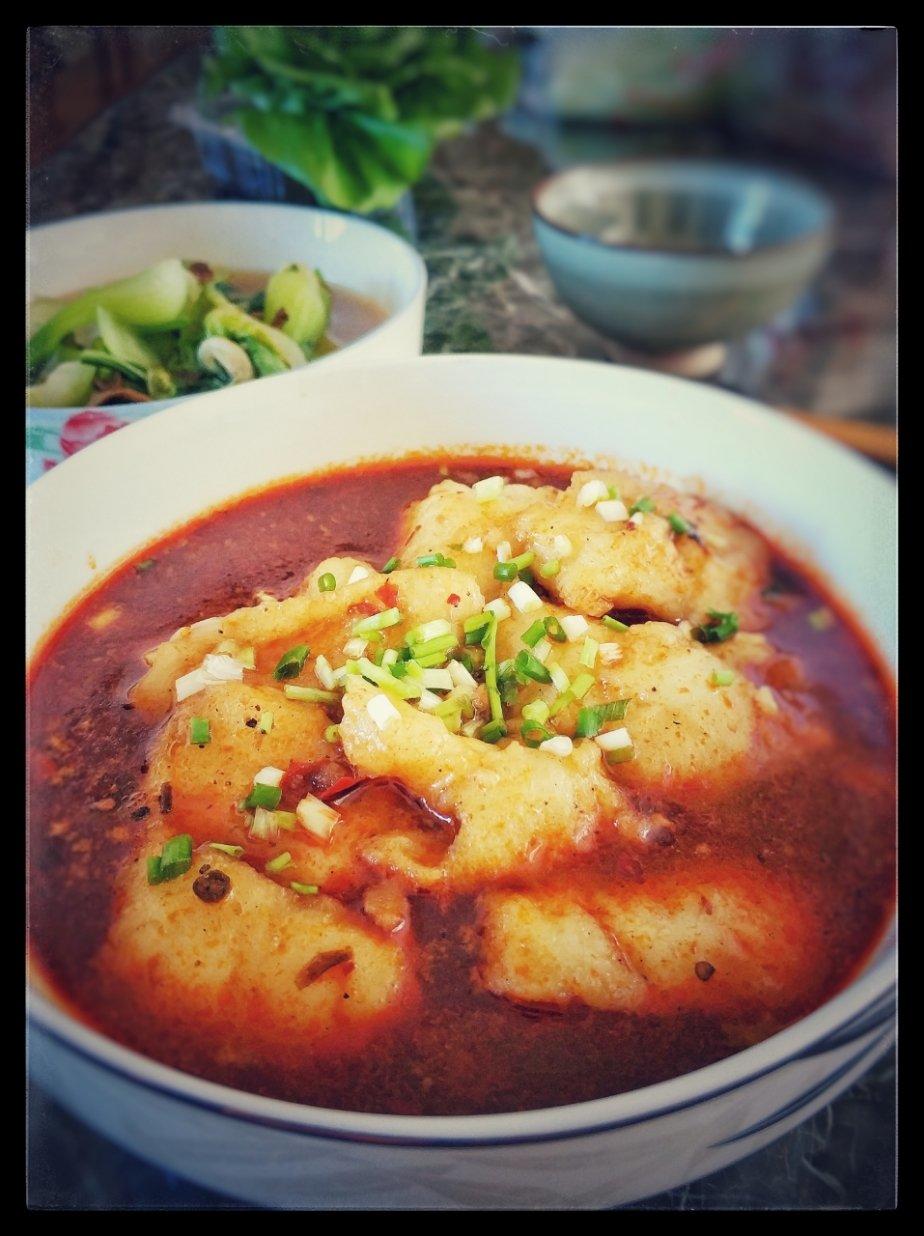 #三刻321cooking# #午餐•2018年9月23日# 第十天。豆花鱼比豆花牛肉辣一点点,但还是能接受的。巴沙鱼比梭边鱼的味道清爽些。除了隐约露了个脸的油菜外,另外用cycle的芝士贝果作主食,没有拍。