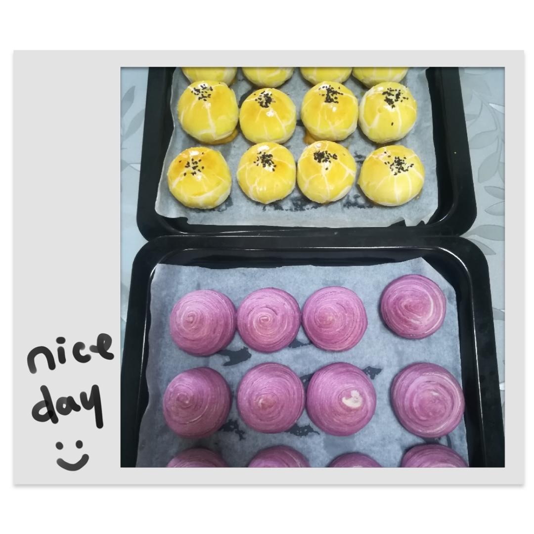 烤了一盘又一盘,完全不够分啊!今天的蛋黄酥是肉松蛋黄馅噢!😍