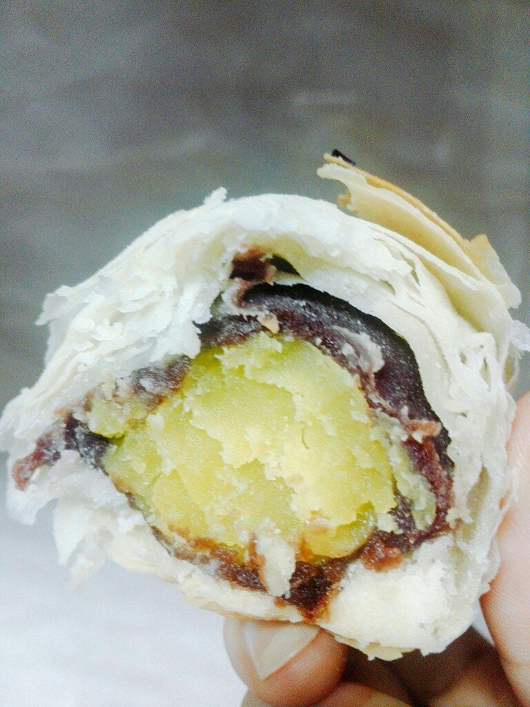 方子真好,做出来又大又酥,一共16个。烤好后表面涂的蛋黄都成了一层皮裂开了😂特地自己熬了猪油,剥出的蛋黄也很漂亮。