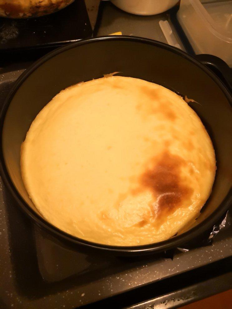 改了点配方,做成生酮版本的了,闻着很香,烤箱不是太给力有点火小,正好中秋,就让表面这样了,跟月亮一样😜