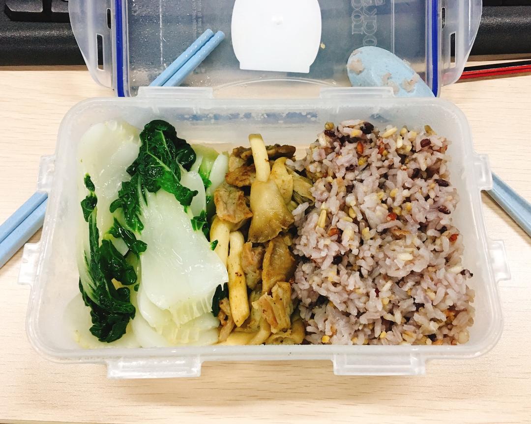 平菇炒肉片+小白菜+杂粮饭