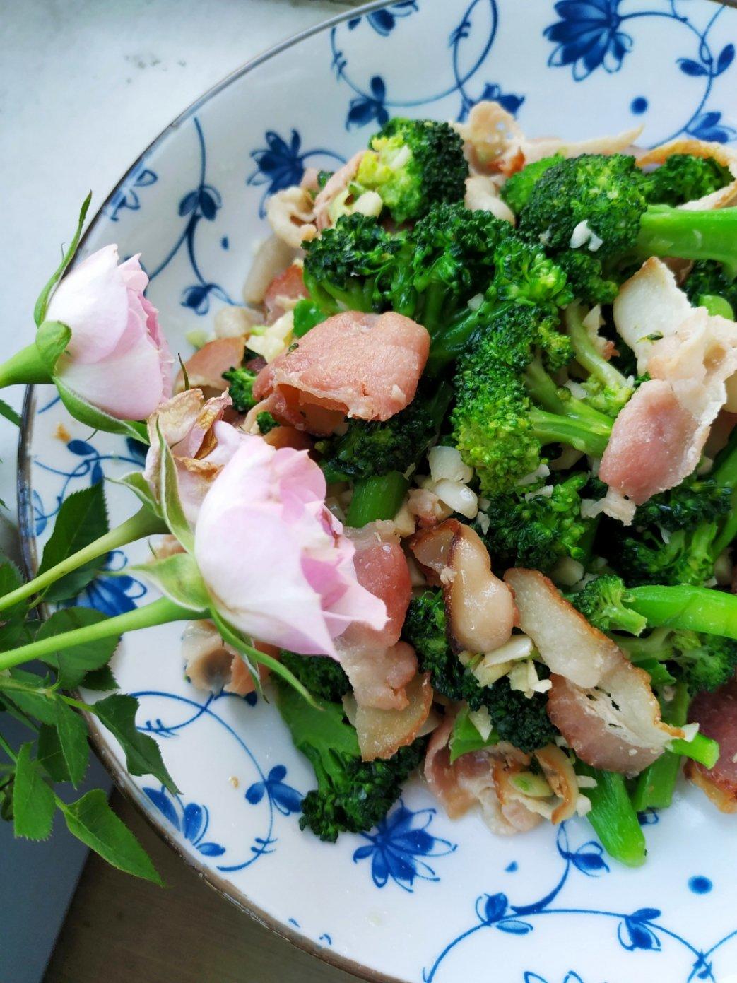西兰花炒培根