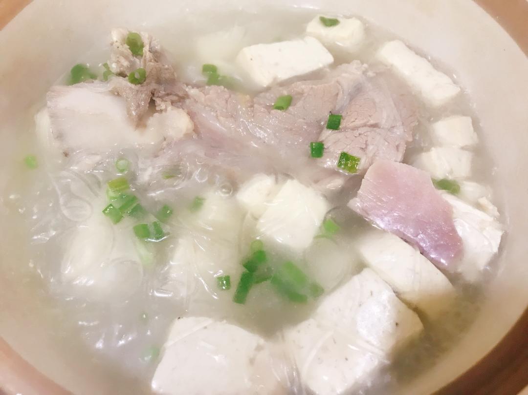 一根筒骨一锅汤,放点豆腐,汤清清的,好喝~