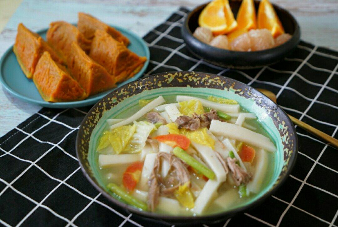 爱米1 做过 2018年10月12日 早餐:白菜芦笋鸭肉年糕汤,蒸南瓜,水果。国庆嘉兴亲戚给的自己养的鸭子,晚上电饭煲预约炖好做底料。老爸种的大南瓜,还是原味蒸既方便又美味。早上起来天气越来越凉了,先吃点热乎的暖暖胃,养养膘。 2018-10-12