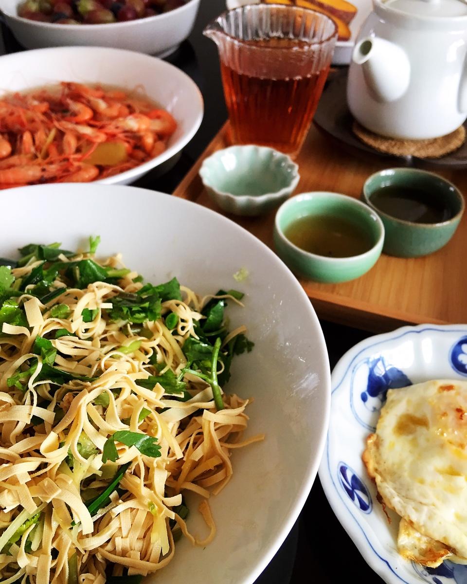 泡一壶茶,烫点大蒜干丝,周末,慢慢吃早餐。