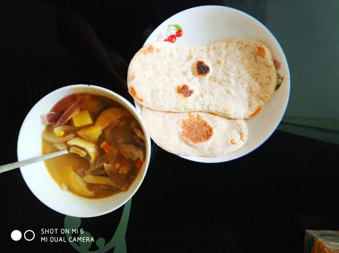 和咖喱配一起,我一口气吃了三个饼!