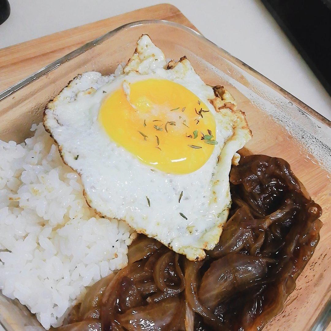 两块红烧肉+半个洋葱+温泉蛋