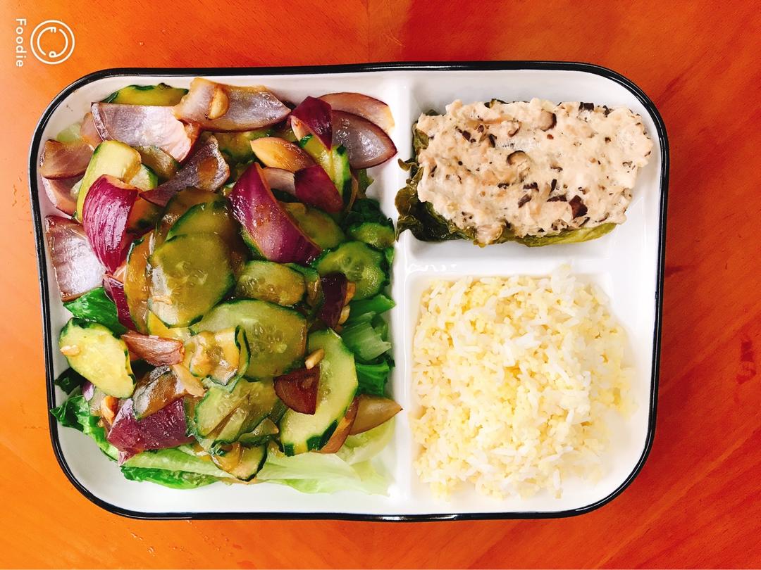 一个人也要好好吃饭~黄瓜底下垫了一大盆生菜哈哈