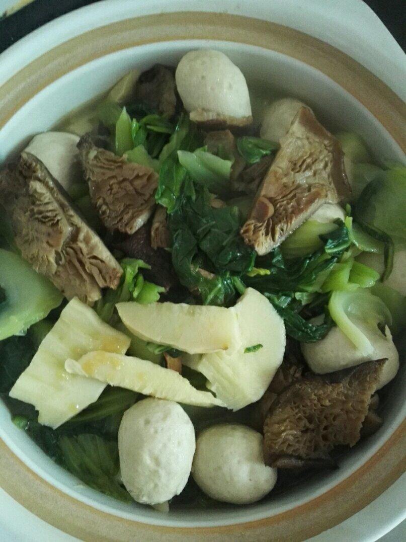 一锅熟,冬笋、潮菜、香菇、鱼丸