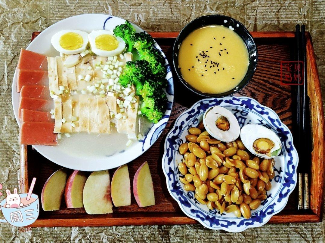 鸡汤火腿锅盔 蜜薯米糊 海鸭蛋 早安❤️