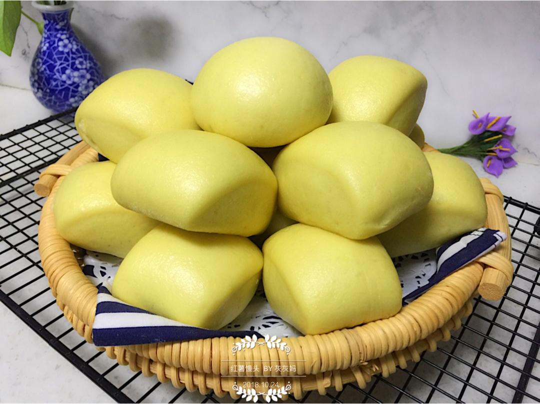 小灰灰妈麻 做过 早餐•2018年10月25日 #早餐•2018年10月25日#红薯各种做法,今晚蒸的红薯馒头,状态百出!水加多了,然后又加粉,就这么来来回回加了好几次水和粉,面团还是偏稀,加了好多高筋粉,揉好面团还是偏软,下次再做,需要减少水量!刚一出炉就吃了三个红薯馒头,吃起来香甜柔软,回味甘甜,柔软不失有嚼劲,超级好吃😋😋😋! 2018-10-25