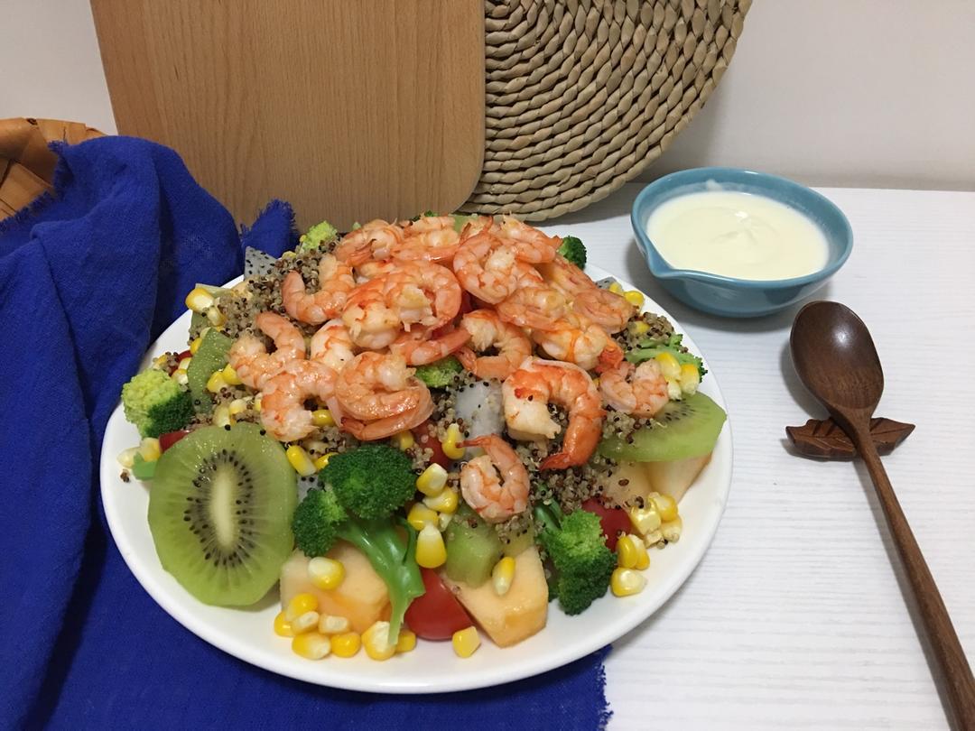 超级健康的藜麦,藜麦鲜虾蔬果沙拉,双人份的量先生一个人吃得完!