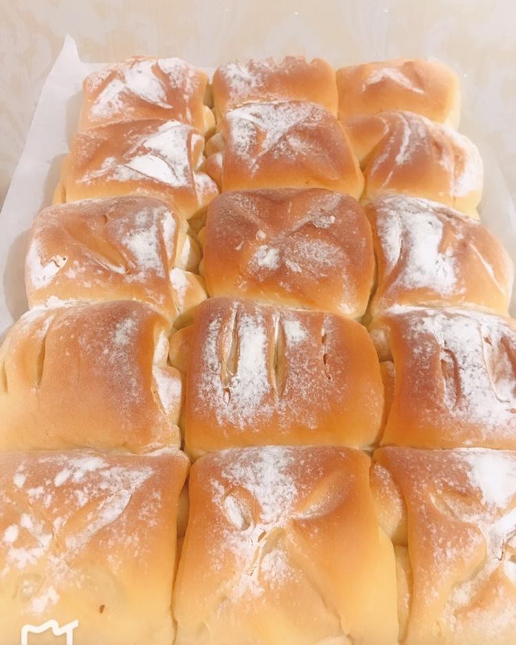 这次做的还挺成功的,多加了3分之一的量,不太甜,再加点糖就好了,用酸奶和的面,黄油多加了一些,上火150、下火160、20分钟